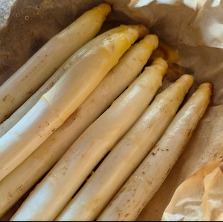 There are plenty of ways to enjoy white asparagus, but recently, we've been enjoying it very simply, baked in a paper parcel with brown butter, which helps retain all the natural flavours.